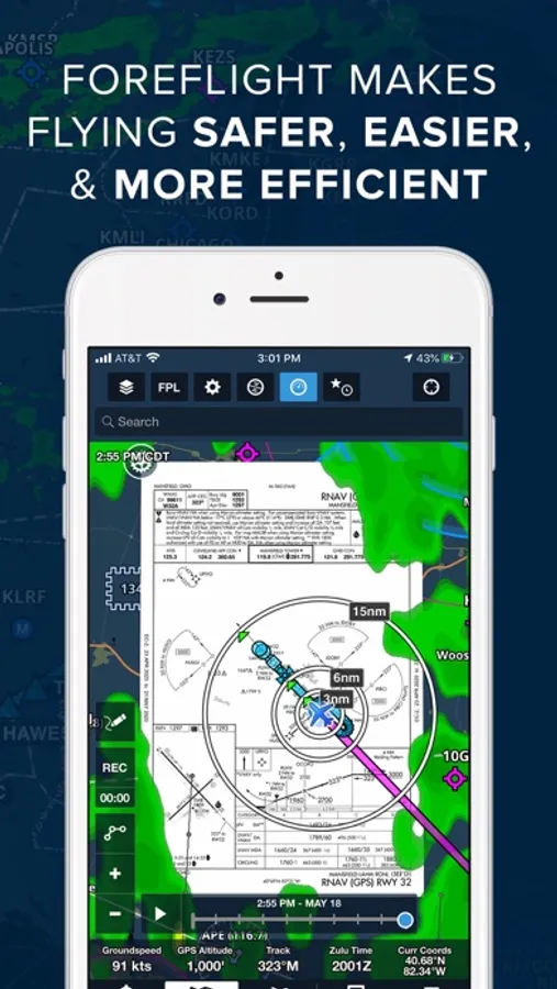 ForeFlight delivers advanced flight planning capabilities, terminal procedure charts, enroute navigation charts, moving map, synthetic vision, hazard awareness, optional Jeppesen charts, a comprehensive library of market-leading weather information and visualization features, a large library of advanced aircraft performance profiles, customizable checklists, integration with a wide range of certified avionics and portable ADS-B and GPS receivers for inflight weather and data, a built-in documents catalog and cloud document capability for management of aircraft and flight operations publications, an easy-to-use pilot logbook for keeping track of flight experience, and so much more. ForeFlight is backed by our Pilot Support Team who delivers amazingly fast, accurate, and friendly customer service.
