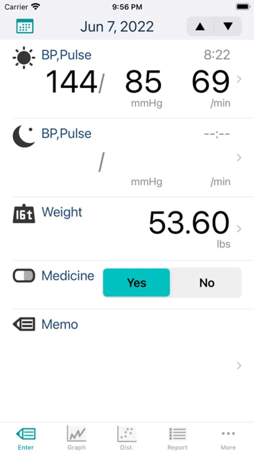 (Morning and evening blood pressure, weight, taking medicine, notes and blood pressure recorded time)