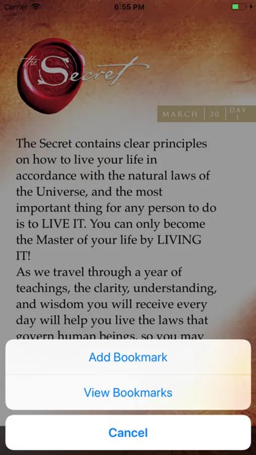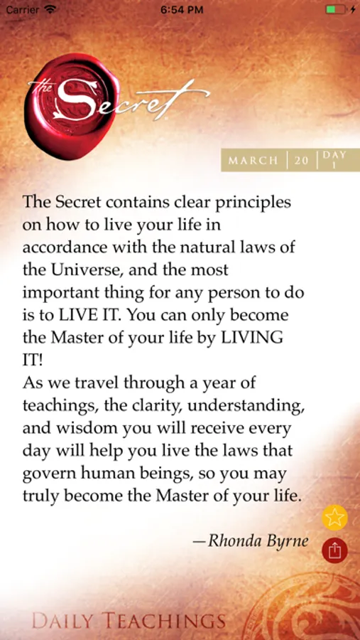 You can now carry The Secret’s wisest, most compelling teachings with you wherever you go, and access them whenever you like! The Secret Daily Teachings for iPhone application takes the printed edition into another stratosphere, enabling you to read the Secret Daily Teachings on the go, and live The Secret 24/7, 365 days a year.