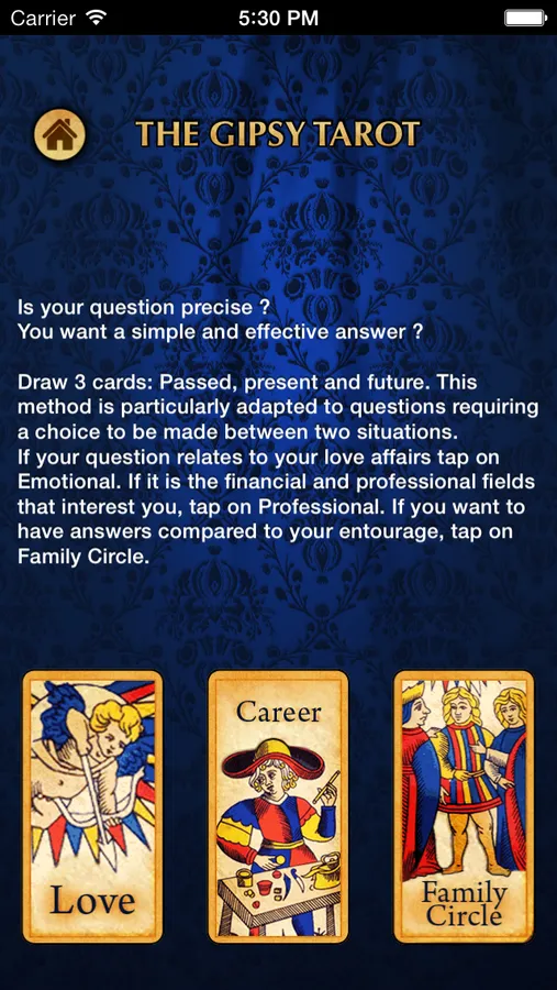 With iTarot, you will be able to interpret the cards of the most famous and oldest divinatory tarot through four drawing methods performed from the 22 Major Arcanas.