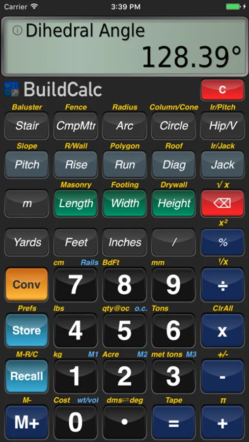 • Less “quirks”. Have you been annoyed by arcane key stroke sequences on other construction calculators? We are too. BuildCalc 2.1 streamlined the keystrokes to do a better job of giving you less “errors” and more results. Don’t remember what you have to enter before a Hip Rafter or Stair calculation? Well, now you don’t have to. BuildCalc will provide you with a check list of inputs and on-the-spot help to get it right.