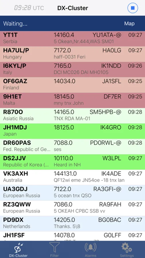 This App is connecting the so called international DX-Cluster database in realtime. The results are analyzed and displayed in an easy to read overview.