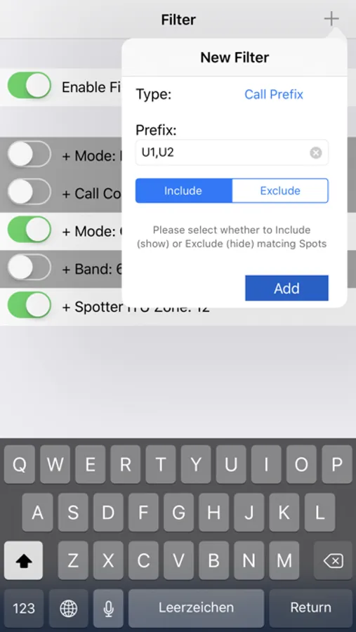 Calls (the callsign of the operators) will be decoded automatically by the App. This allows even inexperienced users to know the countries of the operators.