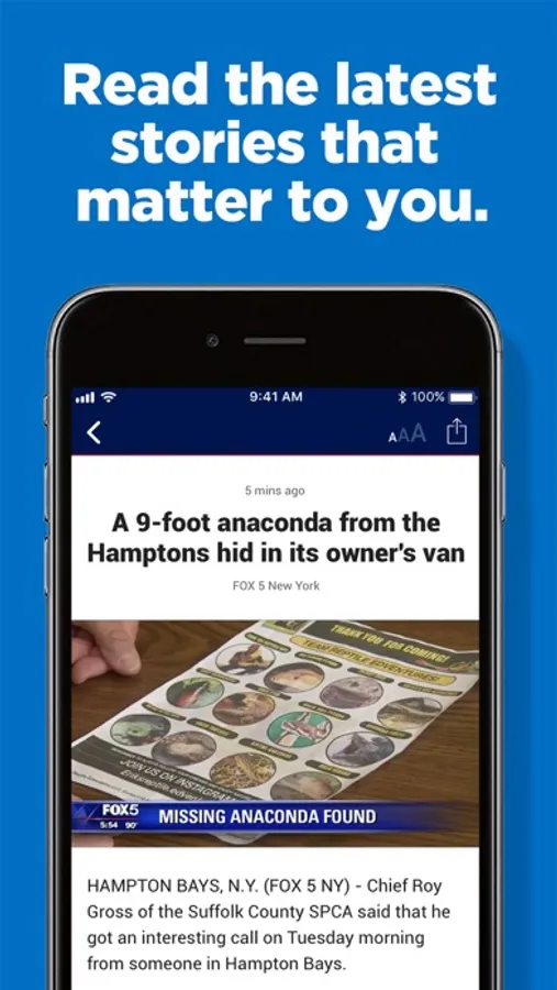 News doesn't wait, why should you? Take FOX 5 NY everywhere you go! Our app connects you with top stories in and around New York City, Long Island, New Jersey, and Connecticut— complete with breaking news alerts, live video, and real-time weather forecasts.