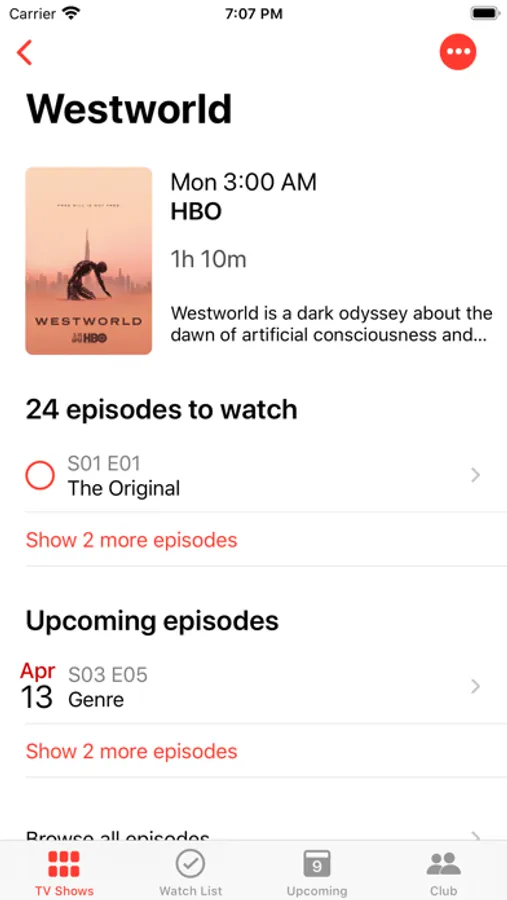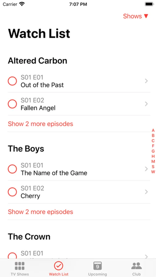 - Get a quick overview of all the upcoming episodes and those you didn't watch yet for all of your shows.
