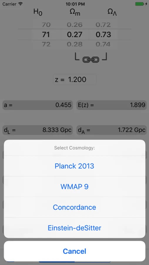 * Easily choose from common reference cosmologies, including Planck 2013, WMAP9, Concordance, and Einstein-deSitter