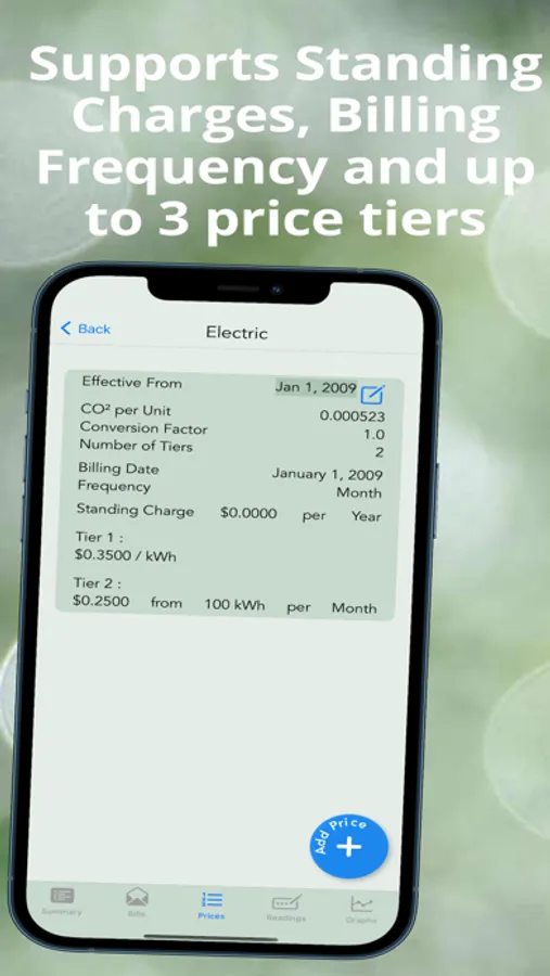 * Configure your specific price points per meter, including up to 3 price tiers and standing charges. Tiers and standing charges can be configured per hour/day/week/month/bi-monthly/quarter/half year or full year.