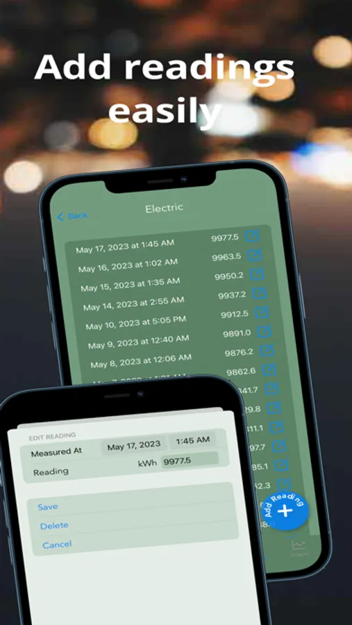 * Add as many readings as you like, multiple per day or only once a week. The usage will be as accurate as the data you enter.