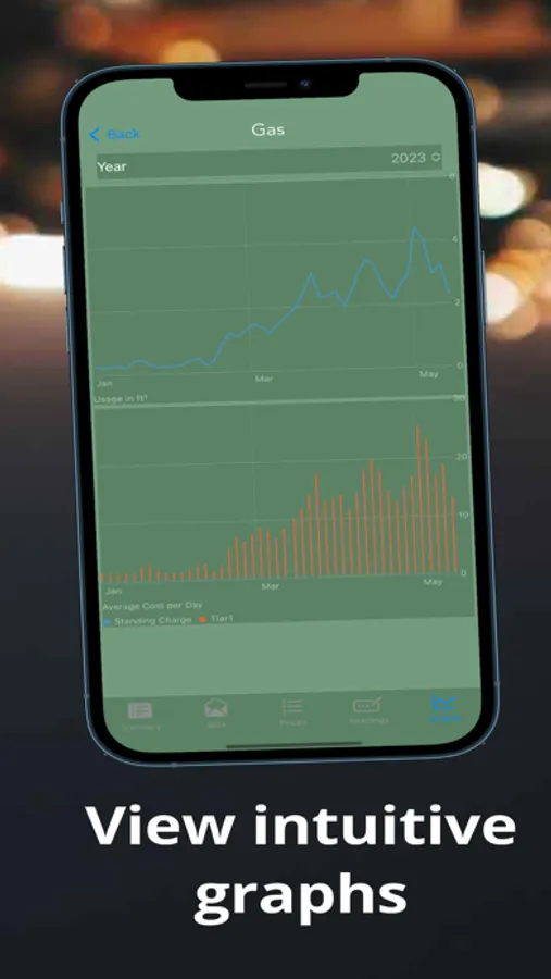 * View graphs of usage per meter along with cost split out into standing charge and your 3 tiers.