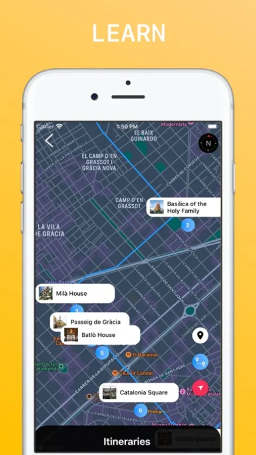 We provide information about every corner of Barcelona in audio format spoken by native speakers. You don’t need to read extensive texts anymore.