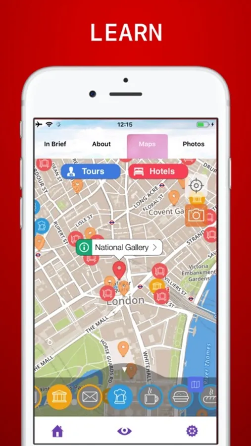 London Travel Guide provides you with interactive zoomable OFFLINE MAPS (x6 zoom + GPS capable) of the region showing the attractions, public bus stops, restaurants, pubs, hotels, hospitals and many other useful points of interest. You cannot get lost!. With this guide, you will not only visit the city but also move around its region.