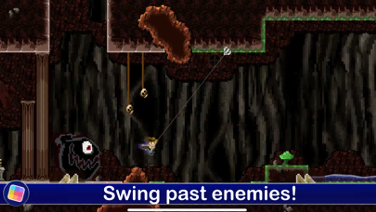 - Tons of Upgrades: Spend your hard-won treasure on better ropes, sharper hooks... even rocket boots and a shotgun!