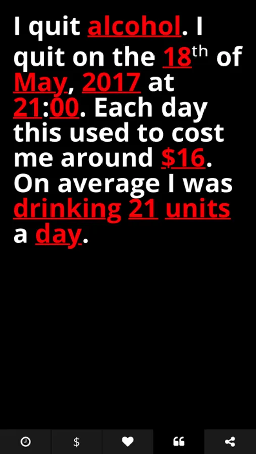 I hope that this simple app can help you to stay free of whatever you are trying to quit, as it has for me.