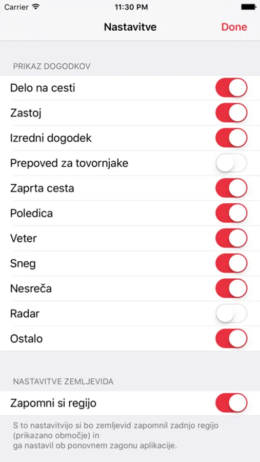 Preprosta aplikacija za prikaz prometnih informacij slovenskih cest. Podatki o prometnih dogodkih (Vir: www.promet.si) so prikazani na vgrajenem zemljevidu. Možen je tudi prikaz lastne lokacije, podrobnosti prikazanih dogodkov in filtriranje posameznih dogodkov. Aplikacija omomgoča tudi ogled cestnih kamer (In App Purchase).