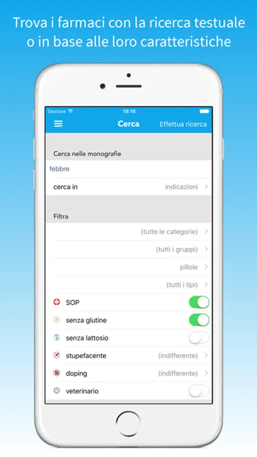 L'app ti permette di cercare facilmente i farmaci tramite nome commerciale, principio attivo o scansione del codice a barre. Inoltre è possibile effettuare ricerche testuali direttamente nelle monografie.