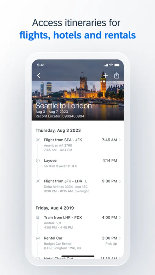 • Integrate your itinerary with TripIt to get real-time travel alerts and updates