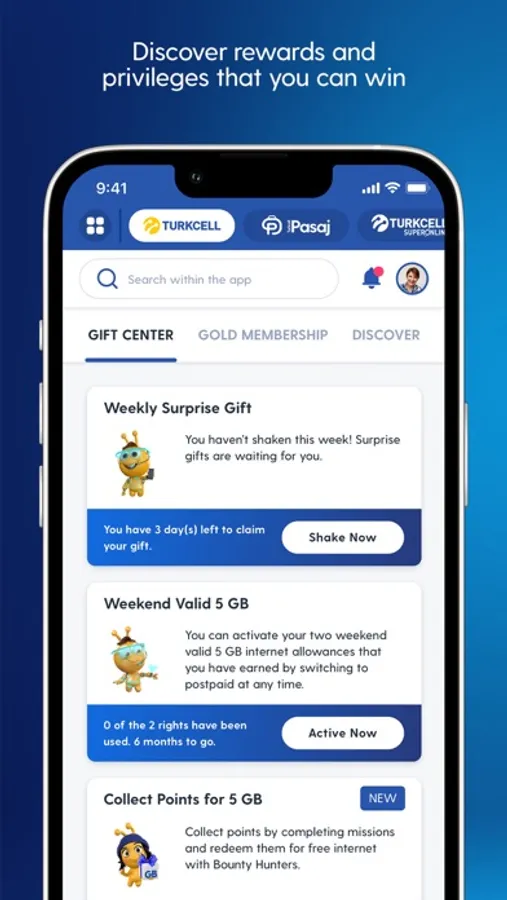 You can see all the gifts you have earned and can earn from Turkcell via the Gift Center. You can follow new campaigns, gifts and opportunities. You can start using your gifts at any time or share them with your beloved ones.