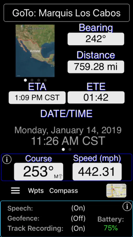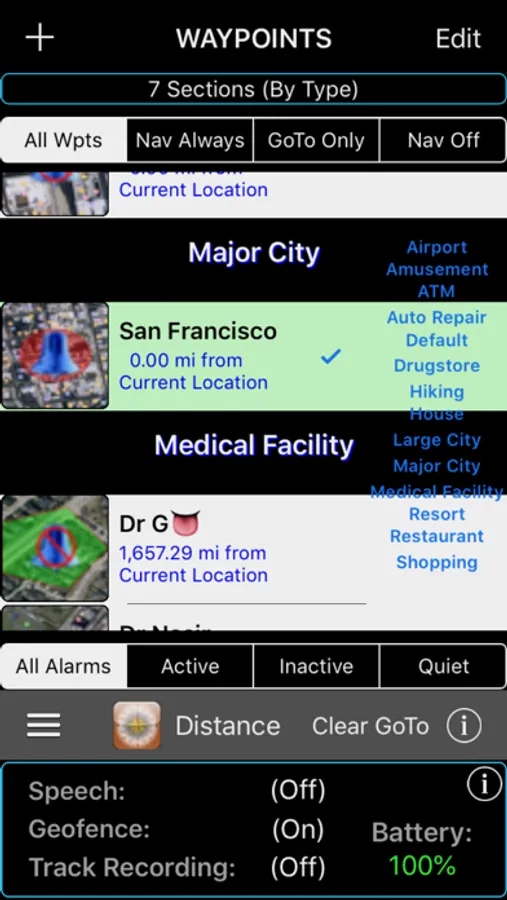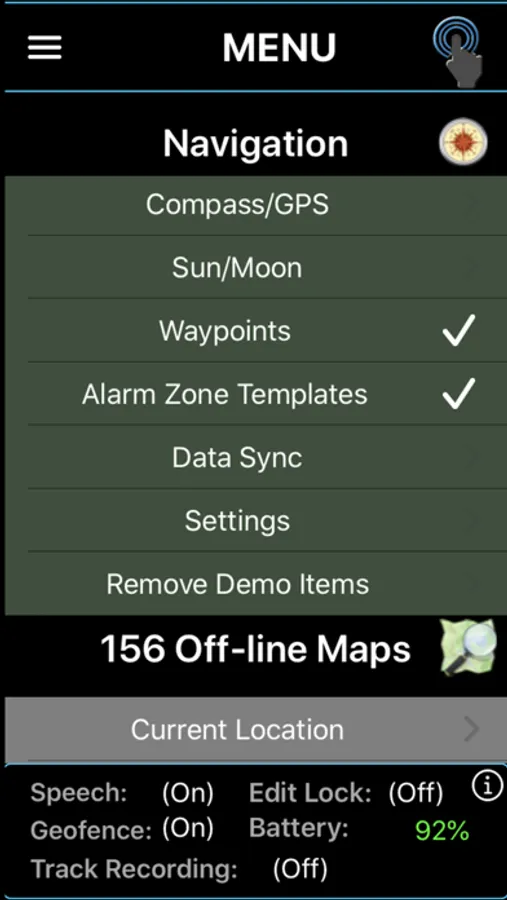 NOTE: With the exception of Siri Voice Shortcuts and selected downloading of Map images for off-line navigation, the app does not upload or depend on being connected to the Internet in order to perform core navigation functionality. All user-data is securely stored locally on the device and access-protected with owner configured password and/or a biometric type authentication method (e.g. Touch ID, Face ID).