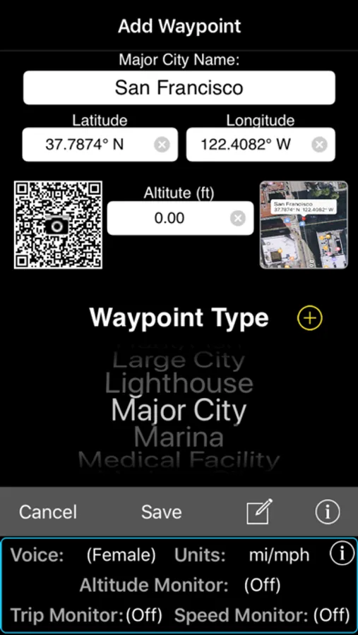 A rich database of Waypoints can be created from different input sources as well as user-supplied informational meta data.