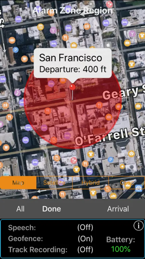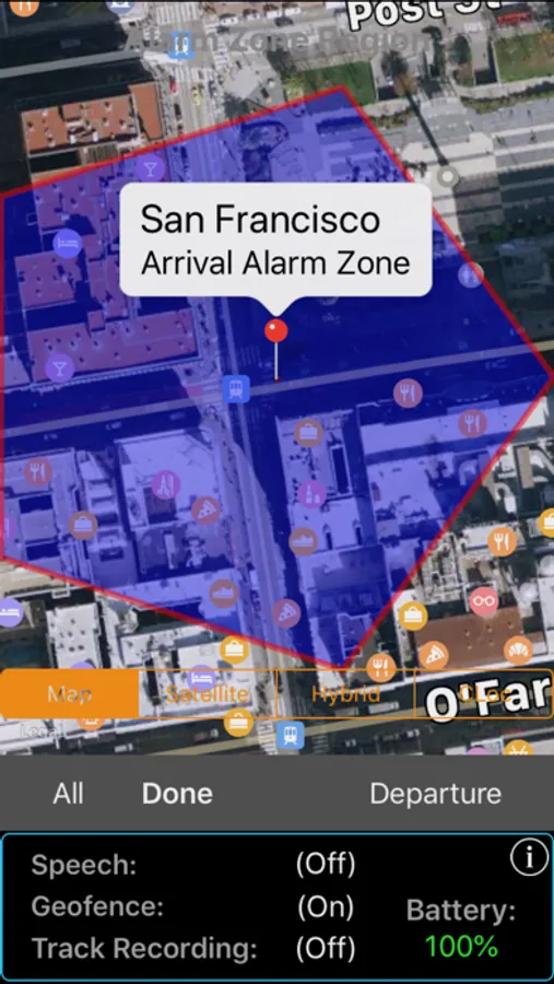 Geofences to alert waypoint arrivals/departures can be configured as either circular or polygon-shaped Alarm Zones.