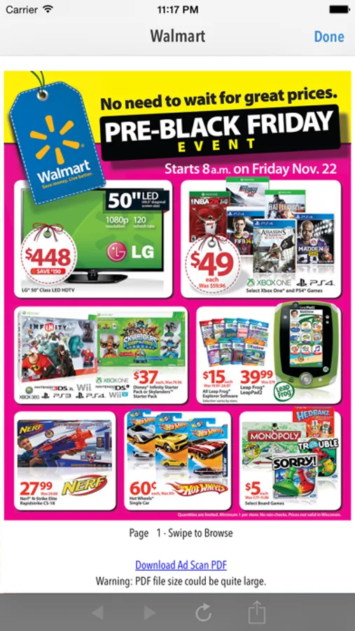 Get the 2017 Black Friday ad leaks first on your iPhone & iPad. You can make a shopping list, get coupons, price compare + buy Black Friday deals from your phone. #1 rated by AppAdvice, featured in: NY Times, Washington Post, WSJ. Get instant alerts for new Black Friday ads & never miss a deal. Check the app frequently for new ads from your favorite stores such as Best Buy, Target, Walmart, Sears and many more.