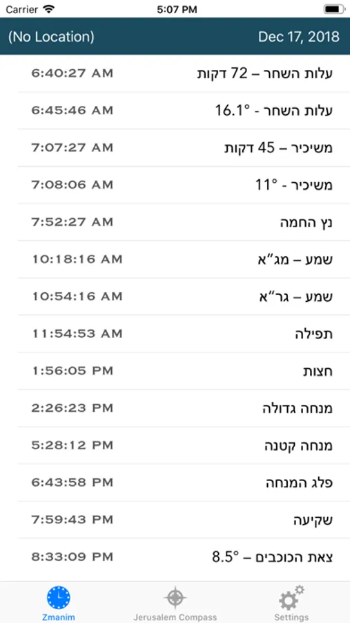 Zmanim is an application for the iPhone and iPod Touch that displays times through-out the day that are relevant to Jewish Law (Halacha).