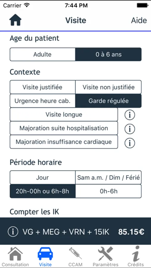 - Détermination des honoraires de consultation en fonction de l’âge du patient, du contexte (urgence, régulation, visite non justifiée, sortie d’hospitalisation …) et de la période horaire (journée, férié, nuit, milieu de nuit...).