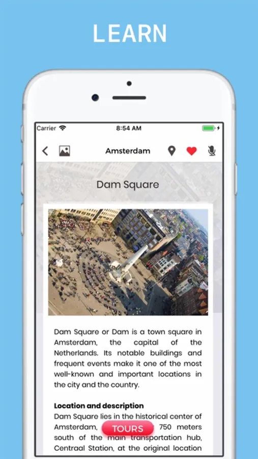 AUGMENTED REALITY, unlike other tourist guides you will be able to discover the city with the best iPhone tool - AR - Just click on the AR button, turn yourself 360° and view on the screen where the best spots are and how to find them. You can also scroll up and down to view the closest and furthest attraction. Slide through the tutorial for more tips.
