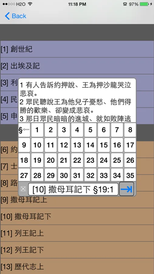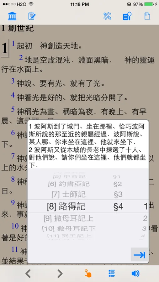 輕擊綠色的箭頭控制章節導航的後退和前進.