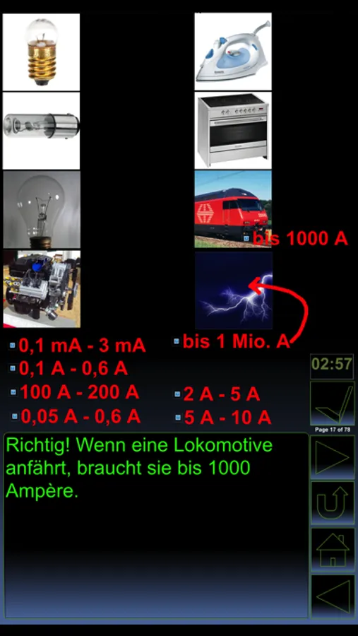 Im Testmodus wird dein Können überprüft. Es geht auf Zeit. Du kannst nicht korrigieren, musst auf Spicktaste und Wiederholungstaste verzichten. Feedback bekommst du trotzdem du lernst auch im Testmodus. Wenn du alle Themen in der Schule bereits durchgenommen hast, kannst du auch direkt mit dem Testmodus beginnen. Ich empfehle dir aber zuerst den Lernmodus mehrmals zu üben, was du auch mit deinem iPhone oder iPad auch ohne Internetverbindung machen kannst. Das Resultat im Testmodus kannst du als Punktzahl oder Prozentzahl anzeigen lassen und den Print Screen deiner Lehrperson schicken. iPhysik 2 muss nur einmal gekauft werden und läuft dann auf dem iPad, iPhone und iPod touch. Nach dem Download braucht es keine Internetverbindung mehr.