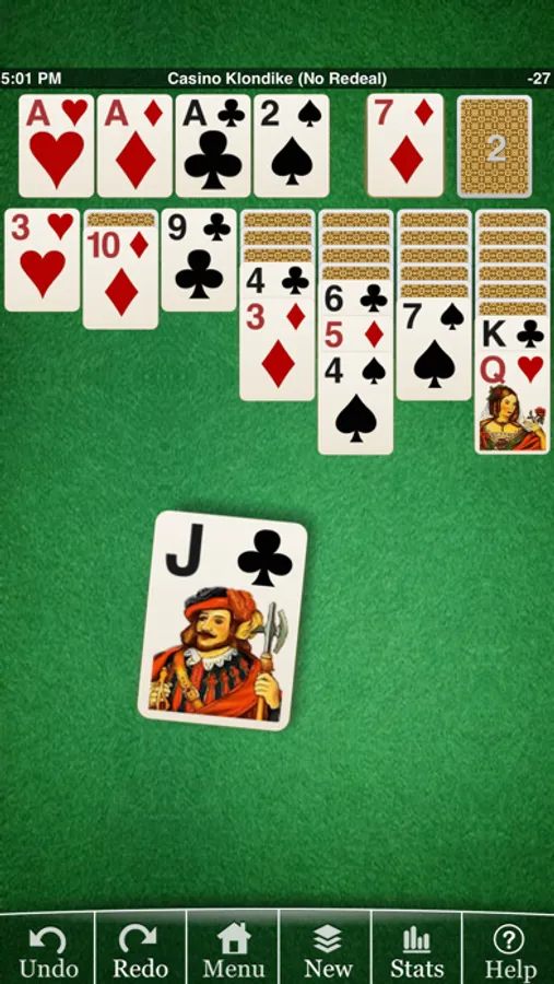 Klondike is the most popular variation of solitaire. Klondike is sometimes called "Patience" or just "Solitaire."