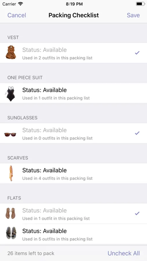 • PACKING LISTS: add whole outfits, plan how you'll pack ahead of time, generate printable checklists and infographics