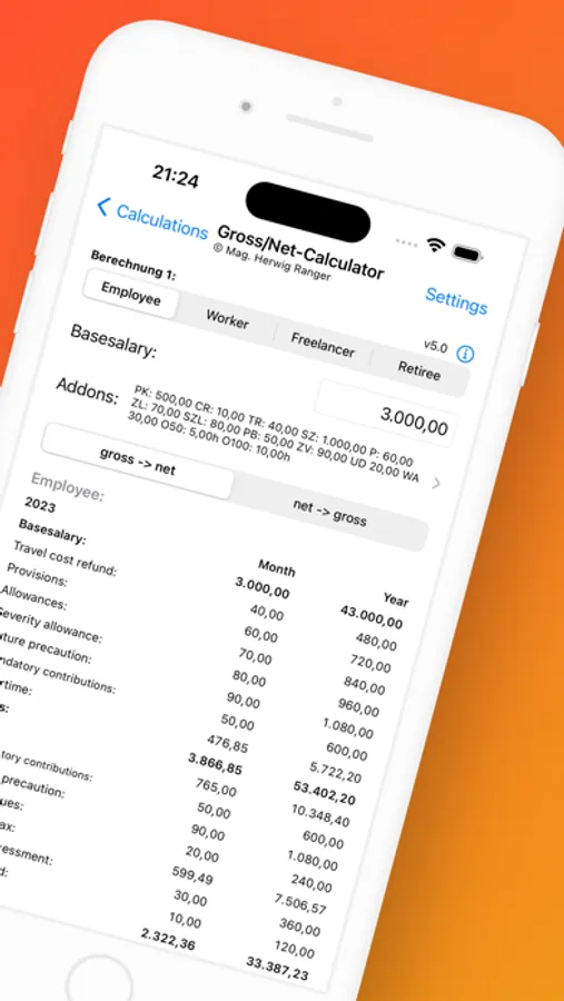 For employers or entrepreneurs, the gross / net calculator is an indispensable tool for calculating how much a worker actually costs per year, month or hour. You do not always have to ask your tax adviser or payroll clerk. You have the answer immediately on your iPhone, IPad or Mac :-), without internet connection and without further costs.