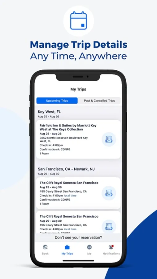 Easily access and make changes to your trip wherever you are with our My Trips feature. Need to check your booking on the go? Get all of your reservation and travel info right on your phone, even if you booked on your computer and even if you don't have service! My Trips works offline, too. Like magic.