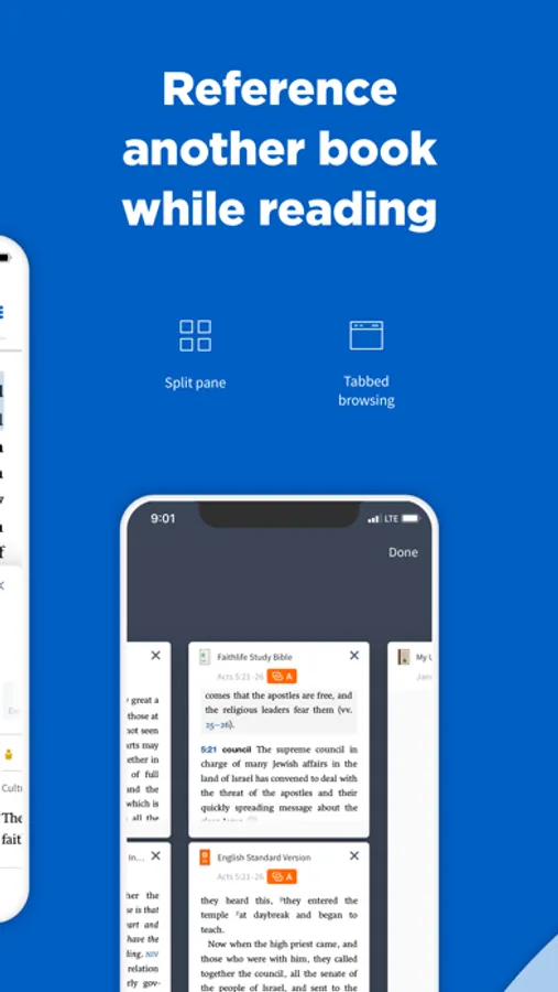 ▪ Open as many resources or Bibles as you want, view them side by side, and link them so they track as you read