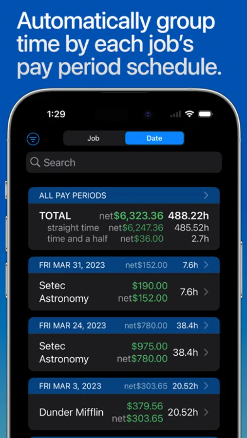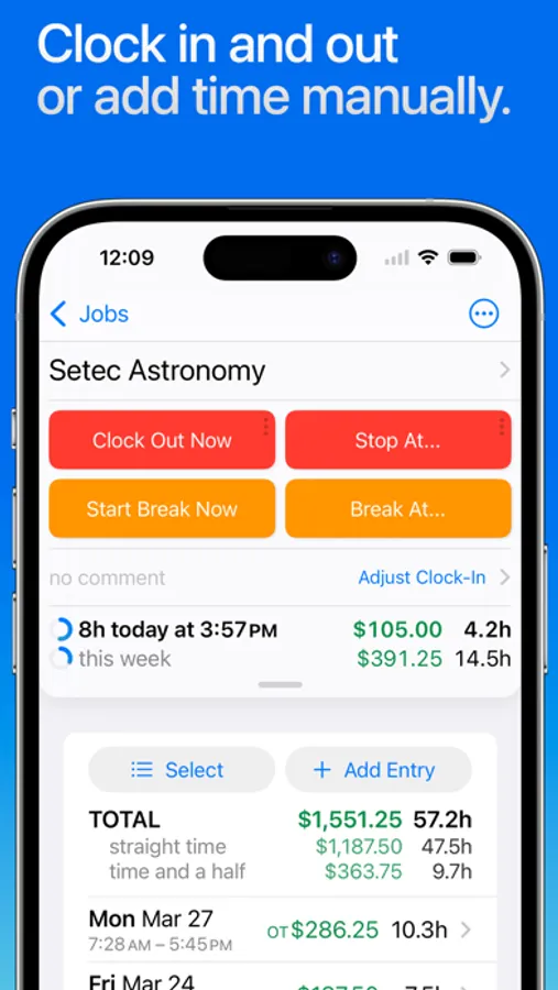 • Automatic daily and weekly overtime earnings calculations