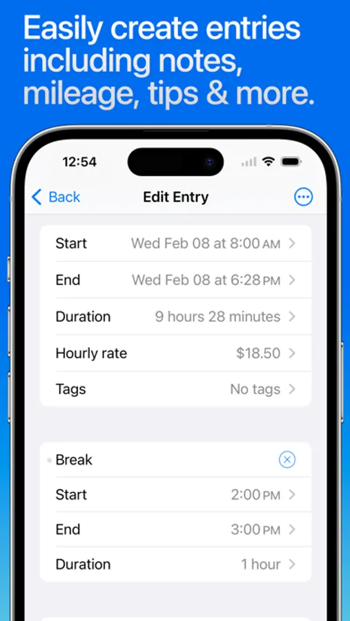 • Track your pay, including Tips, Mileage, and flexible ± time and earnings adjustments