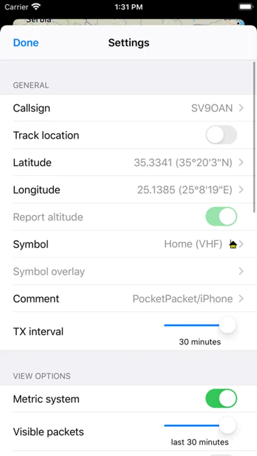 PocketPacket incorporates a software-based TNC, allowing you to directly capture and visualize, or encode and transmit 1200 baud packets (AFSK modulation) using a VHF radio transceiver. With PocketPacket you can also get and send packets over the Internet, by selecting one of the available Tier 2 servers of the global APRS-IS network.
