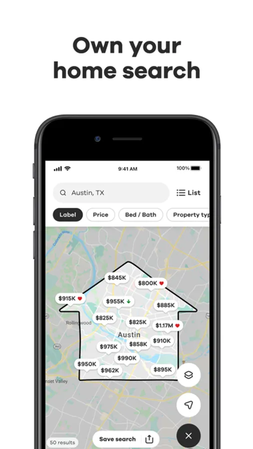 • Search by price range, lot size, number of bedrooms and bathrooms, commute time, and more