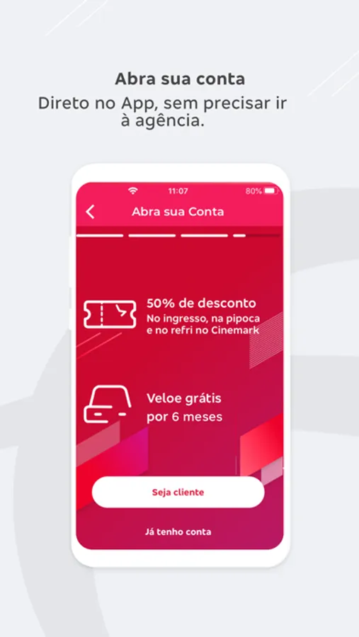 O melhor de tudo é que ao abrir sua conta gratuita pelo App Bradesco, você ganha: