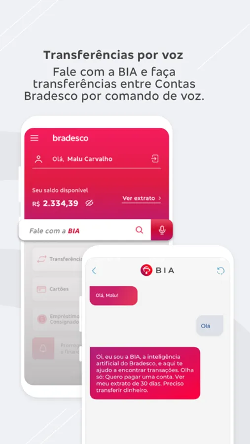 - Transferências entre Contas Bradesco por comando de voz: Acesse a conta e chame a BIA, peça pra ela fazer uma transferência para você ;)