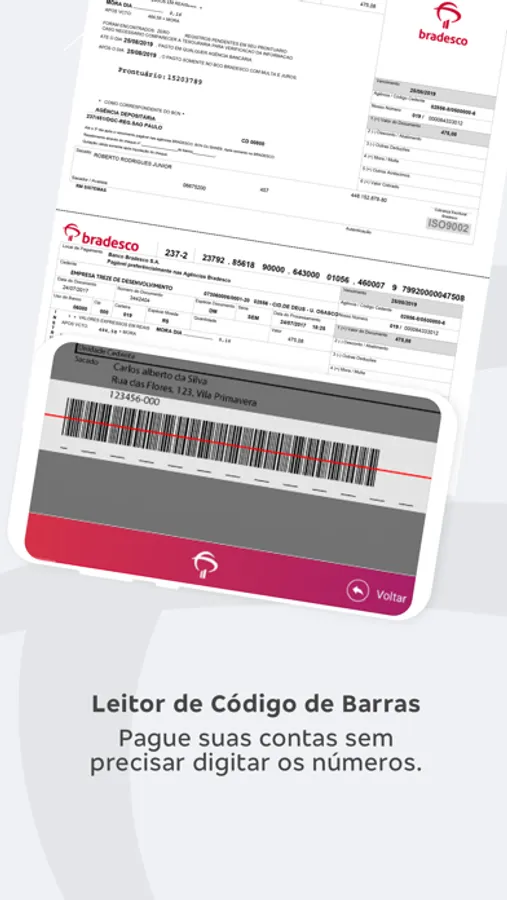- Pagamentos de boletos por código de barras** e leitor de PDF;