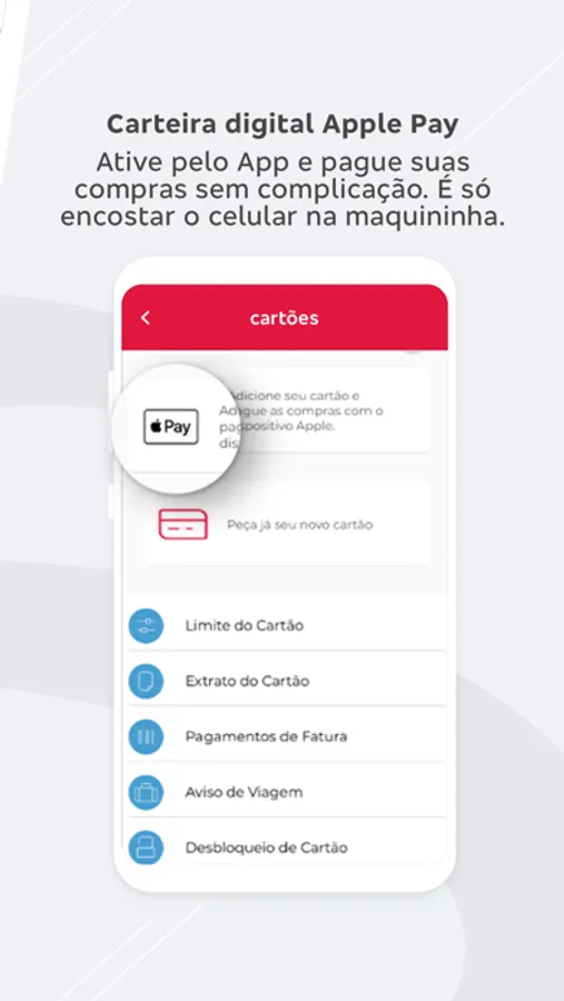 - Carteira Digital: Pelo App, é só adicionar seu Cartão Bradesco na carteira digital Apple Pay*** pra começar a fazer pagamentos de forma ágil e muito fácil. Também é possível pagar suas compras com QR Code - basta acessar o App e usar a câmera pra capturar o código da loja**