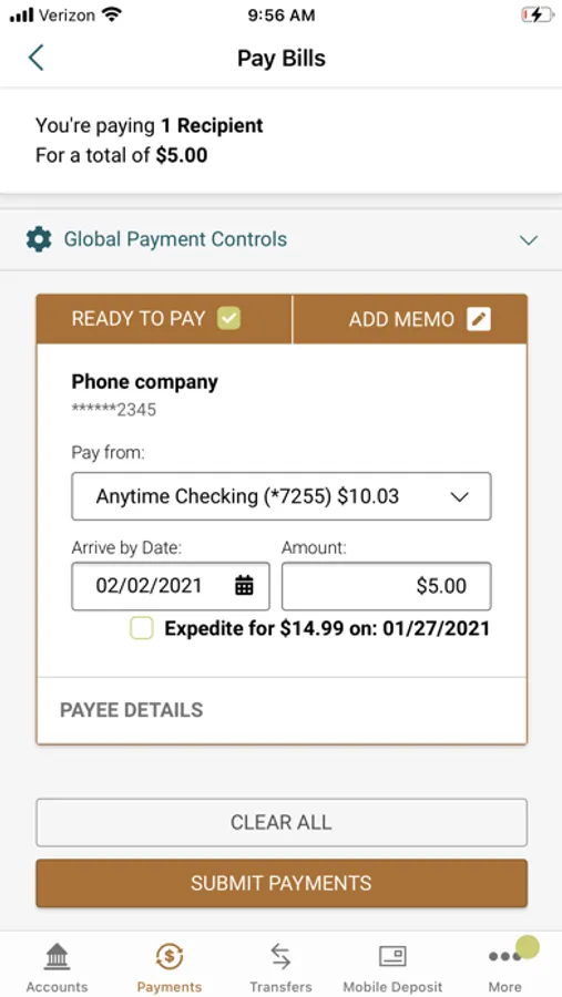 3 Wire Transfers and ACH Direct Deposit require enrollment in each service. See the Personal or Business Schedule of Fees for fees associated with each service.