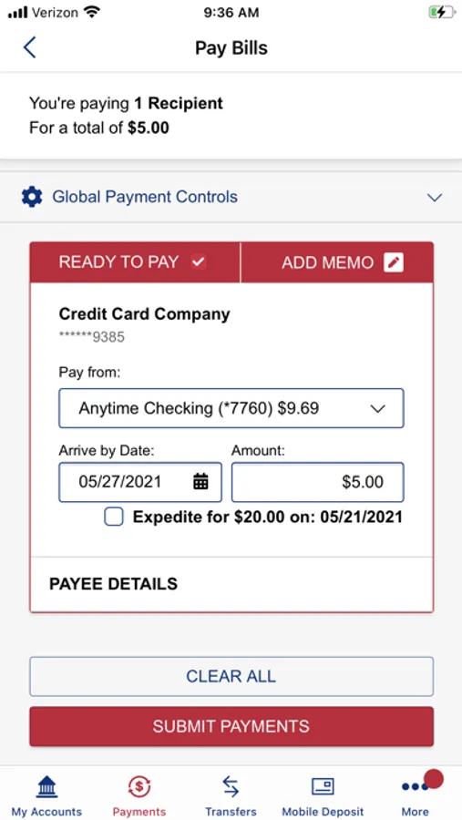 • Submit Wire Transfers³ ⁴ and view transfer history