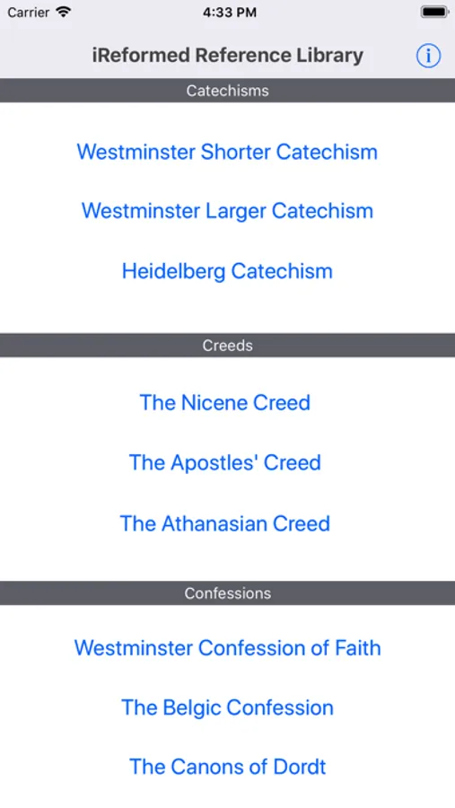 iReformed Reference Library is a collection of the key documents and confessionals of the Presbyterian and Continental Reformed faith.