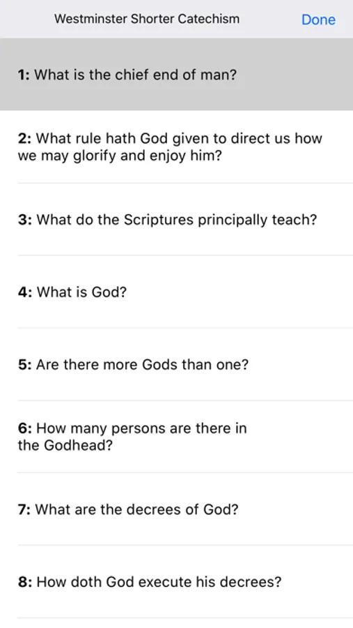 You can use the catechisms as a memory trainer — you can choose to have the answers held back until you touch the screen giving you a chance to test your memory. iReformed remembers your last location in the documents so you can pick up where you last left off in your study and memorizations.