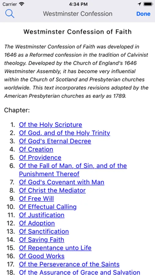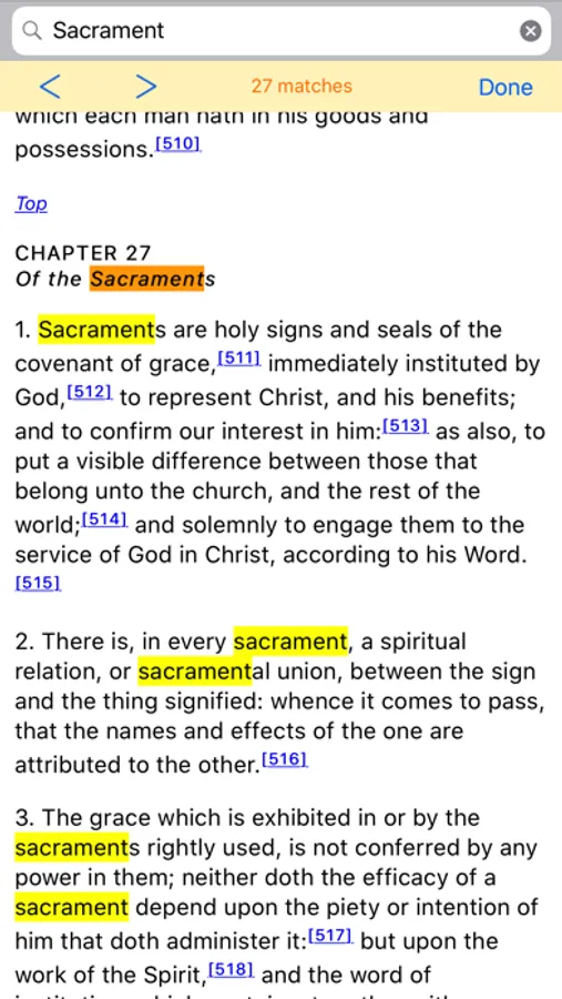 - Creed and Confession documents contains hyperlinks for quick access to chapters / sections