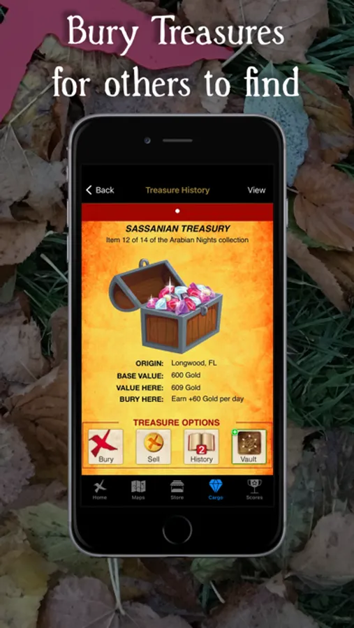 » Here Ye, Here Ye! Treasure hunters detect and track down virtual treasure in the real world to complete your virtual collections. The treasure maps you receive are not just part of the game, they belong to other real world players! That's right, when you bury your treasures, they can be dug up by other players in the game who can then choose to rebury them or hold on to them in their treasure room! Don't worry though, you can pilfer their treasure stash as well!