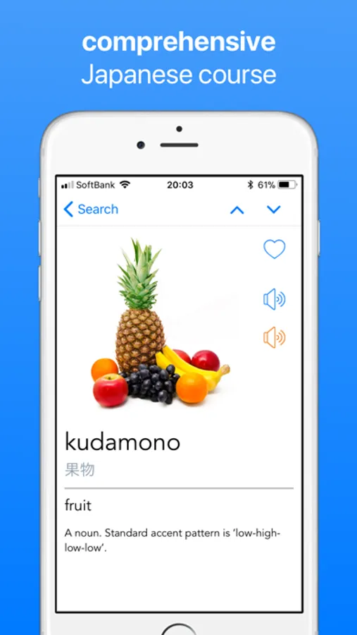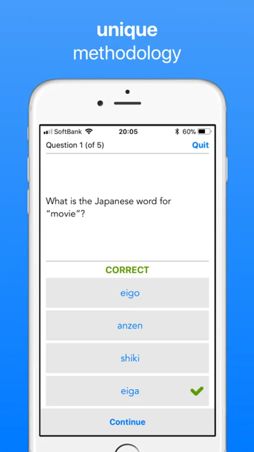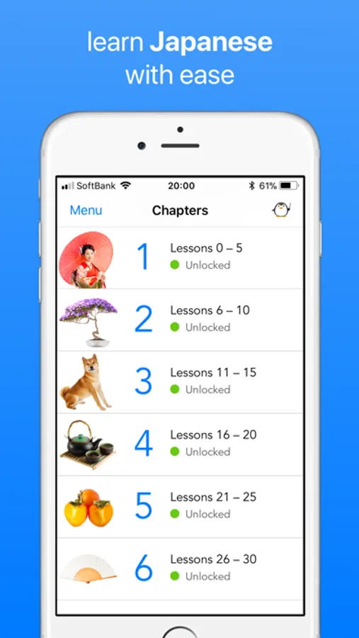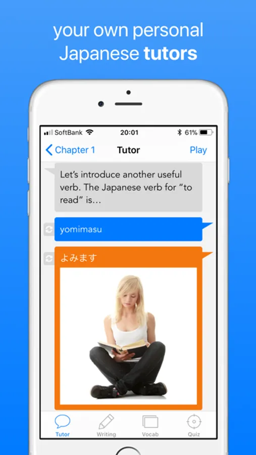 Unlike most other Japanese language apps which just have lists of vocabulary or flashcards, this app actually teaches you the basics of Japanese — grammar, pronunciation, the writing system, and the usage of words — using an effective and clear methodology which you will thoroughly enjoy! There is simply no better way of learning Japanese!